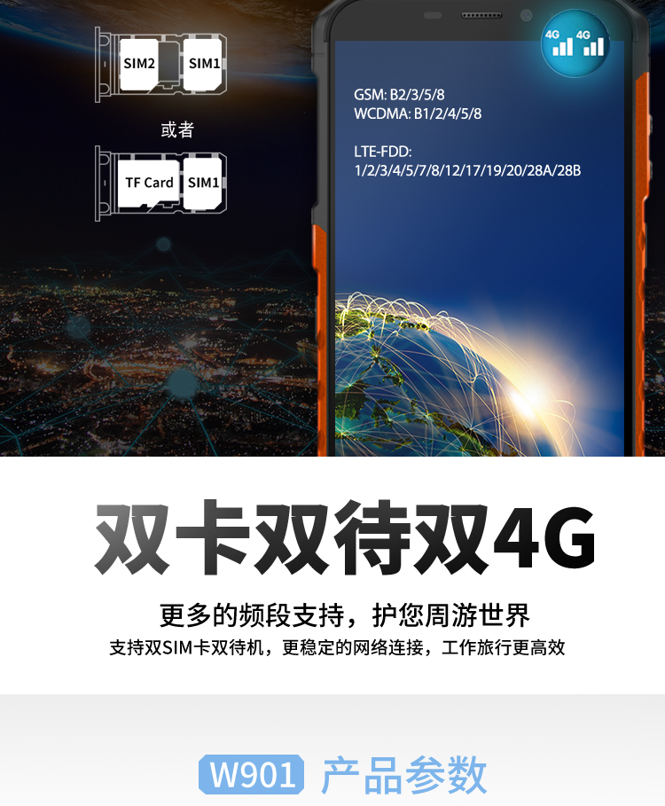 產品特點:雙卡雙待4G全網通IP-68防水|防震|防塵認證
